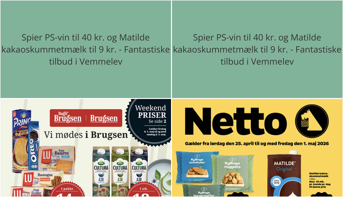 Vi har gennemgået ugens tilbudsaviser for dagligvarebutikker i Vemmelev og fundet nogle fantastiske tilbud. Her er et udpluk af de bedste tilbud fra DagliBrugsen og Netto.