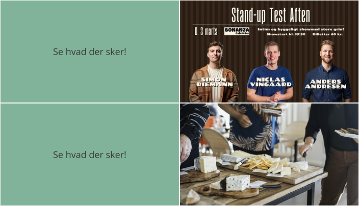 Tirsdag aften kan du opleve et fantastisk stand-up show med Niclas Vingaard, Simon Riemann og tryllekunstner Anders Andresen på Café Bonanza. Det er en aften med byens bedste (og billigste) grin, og du får mulighed for at se, hvad der virker, når komikerne tester og finpudser deres materiale. Komikere med mere end 20 års erfaring og 1500 optrædener hver, byder på enestående underholdning for bare 60 kr.